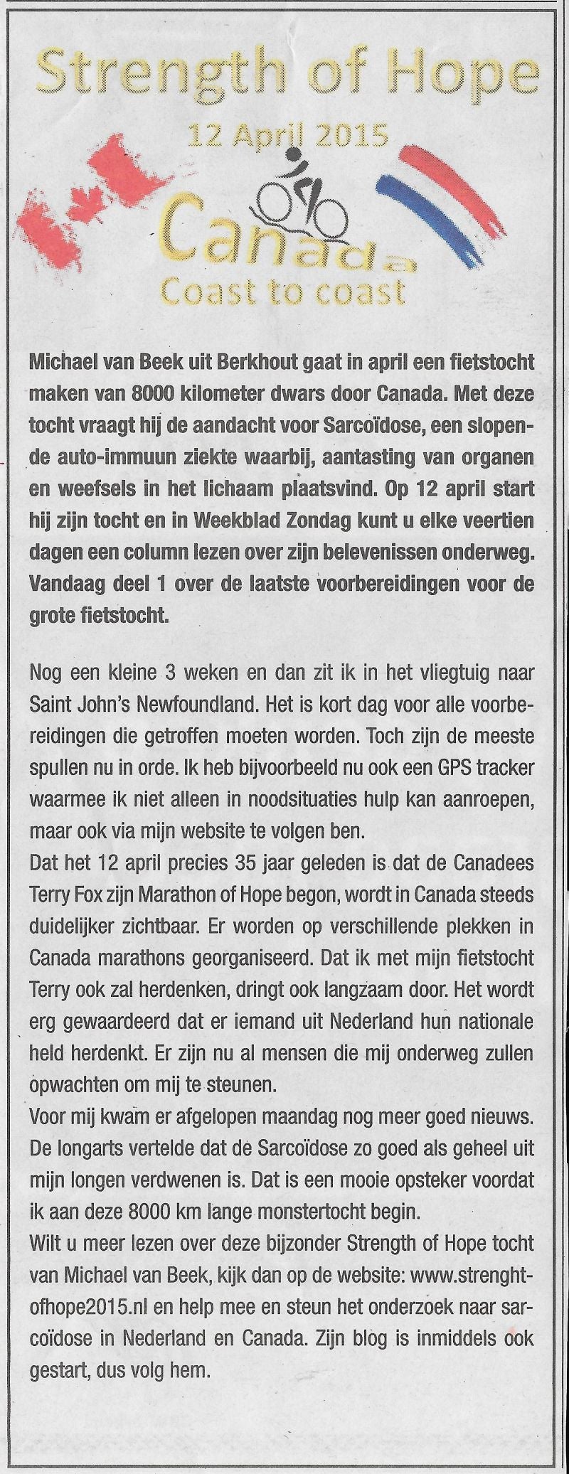 Artikel in SarcoScoop blad voor Sarcoidose patiënten.